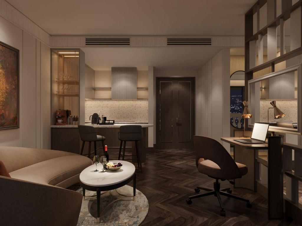 Hạng phòng cao cấp với thiết kế sang trọng, bồn tắm nằm riêng biệt và không gian làm việc rộng rãi, lý tưởng cho các chuyên gia và khách hàng ưu tiên sự riêng tư, đẳng cấp.